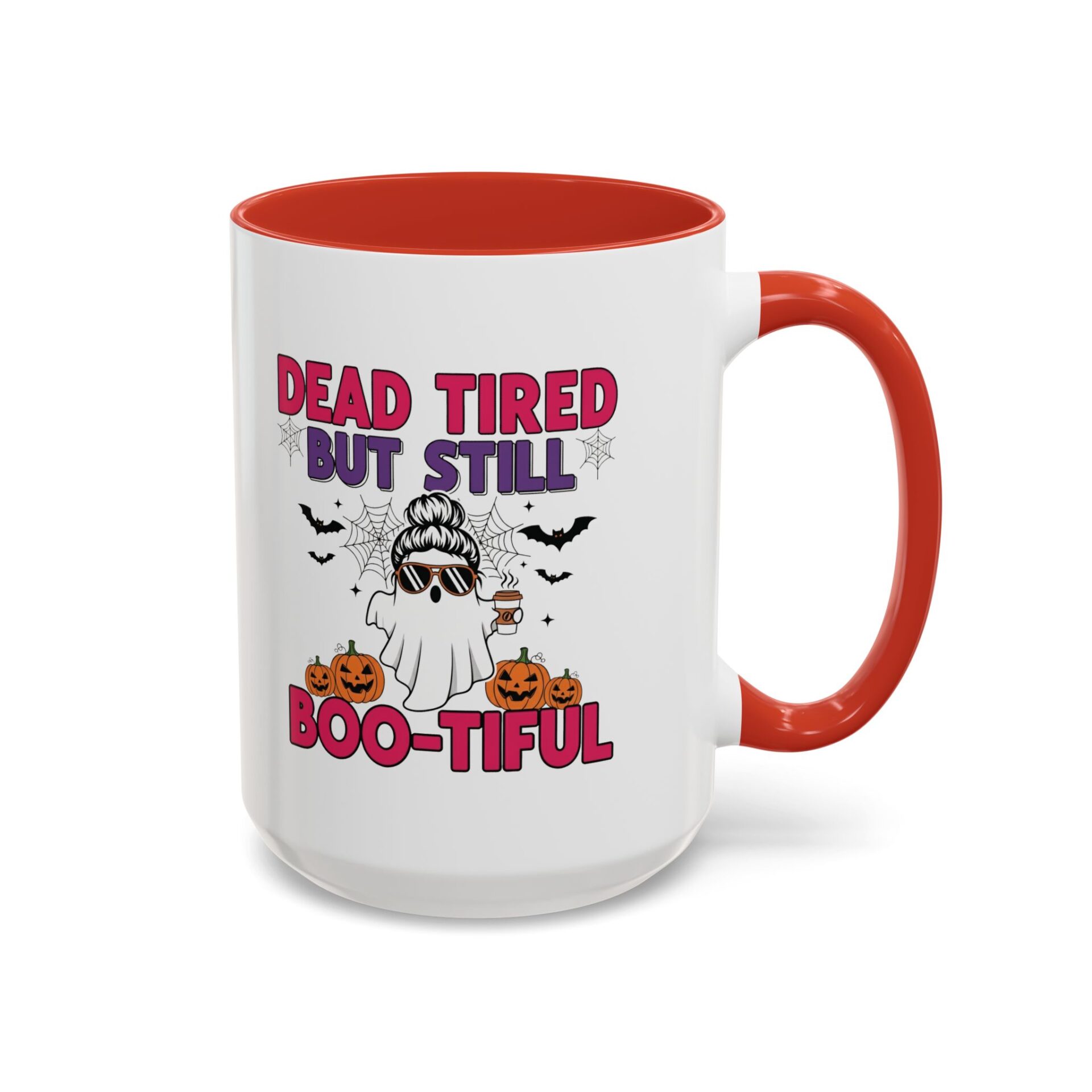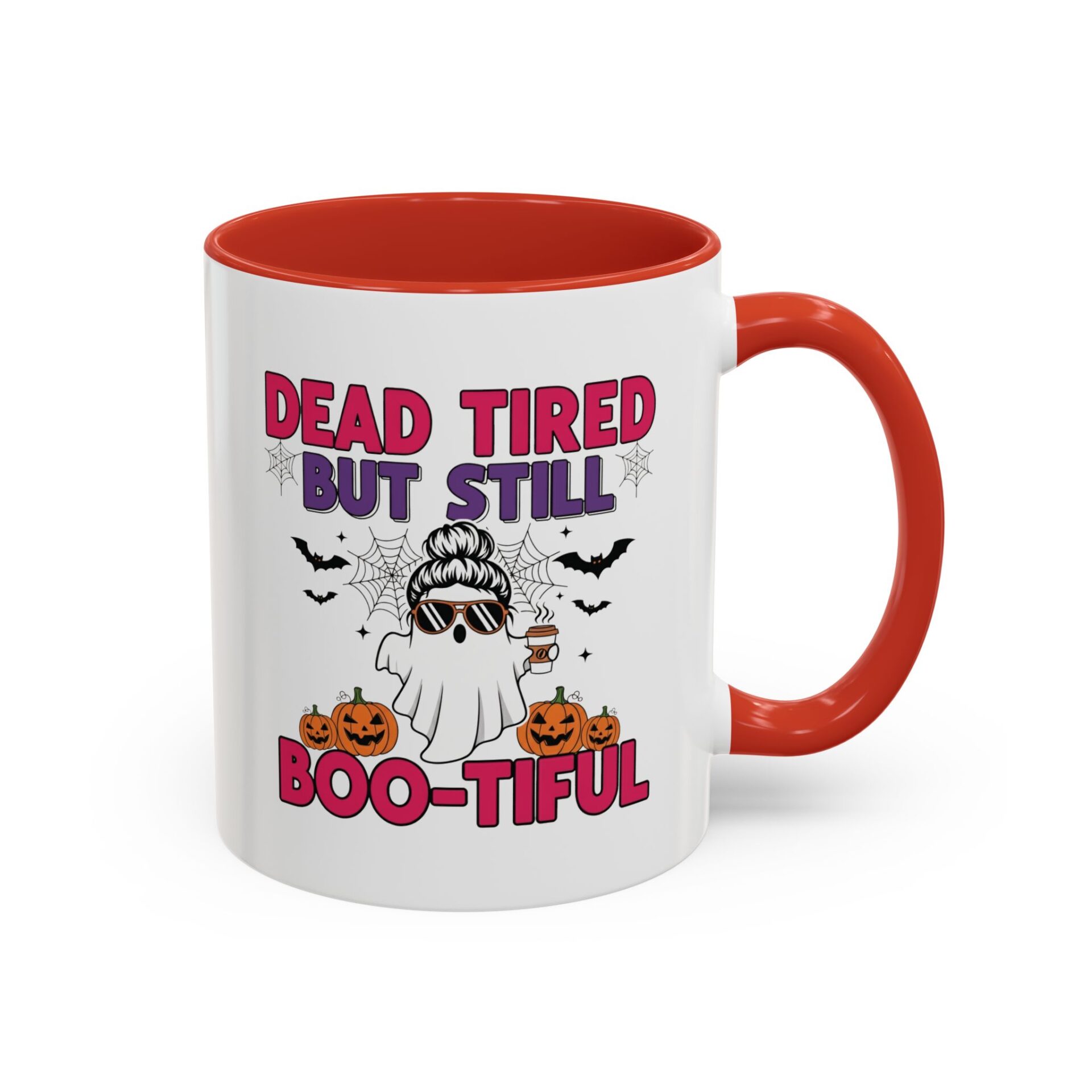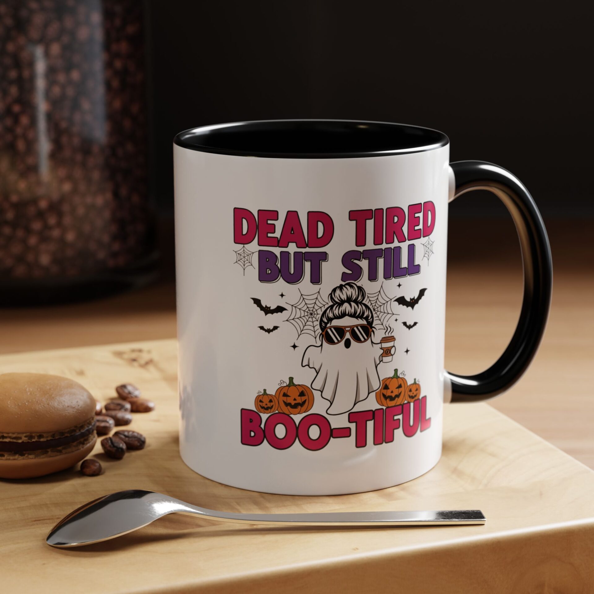 Dead Tired But Still Boo-Tiful Halloween Coffee Mug – Funny Spooky Gift, Halloween Kitchenware, Ceramic Mug for Coffee Lovers