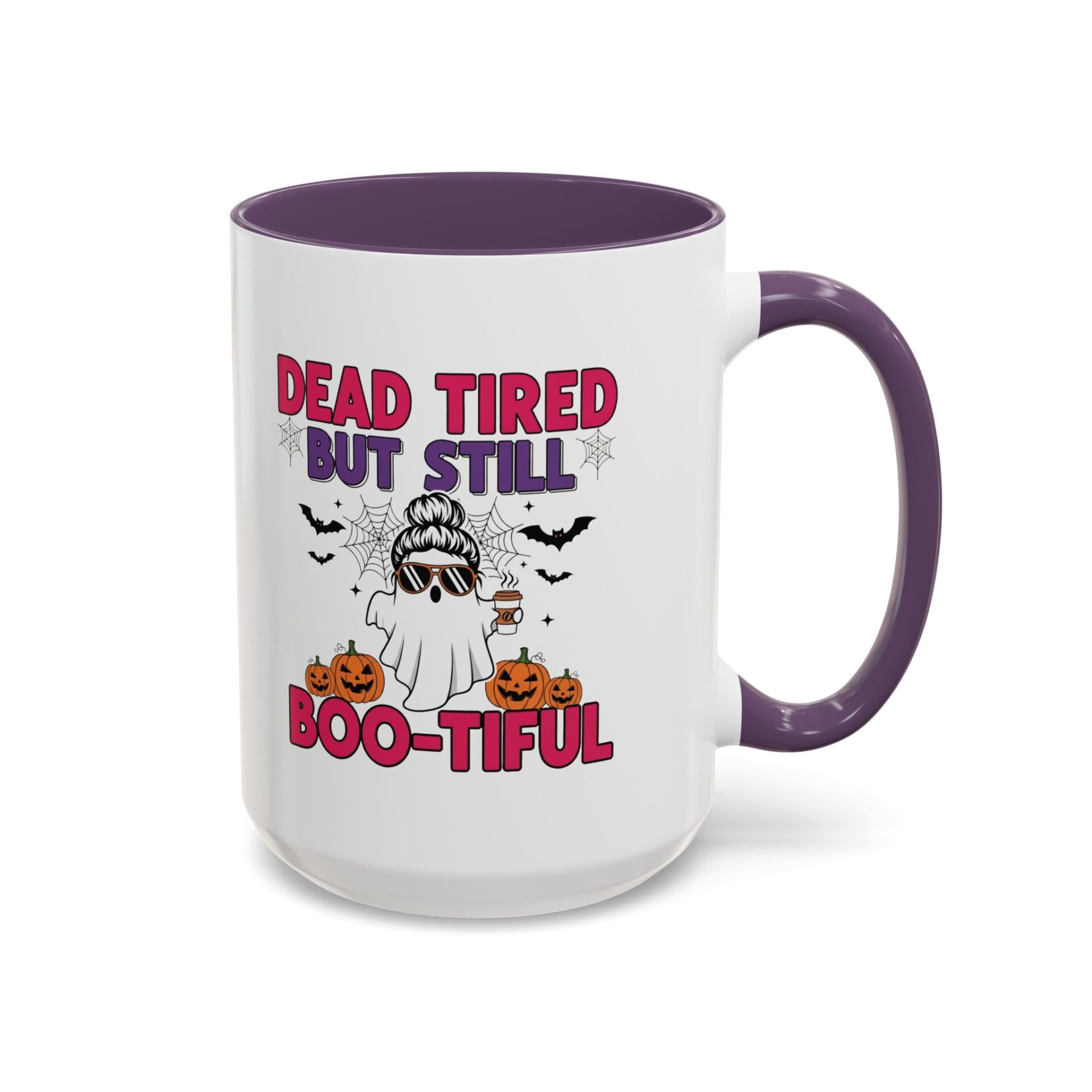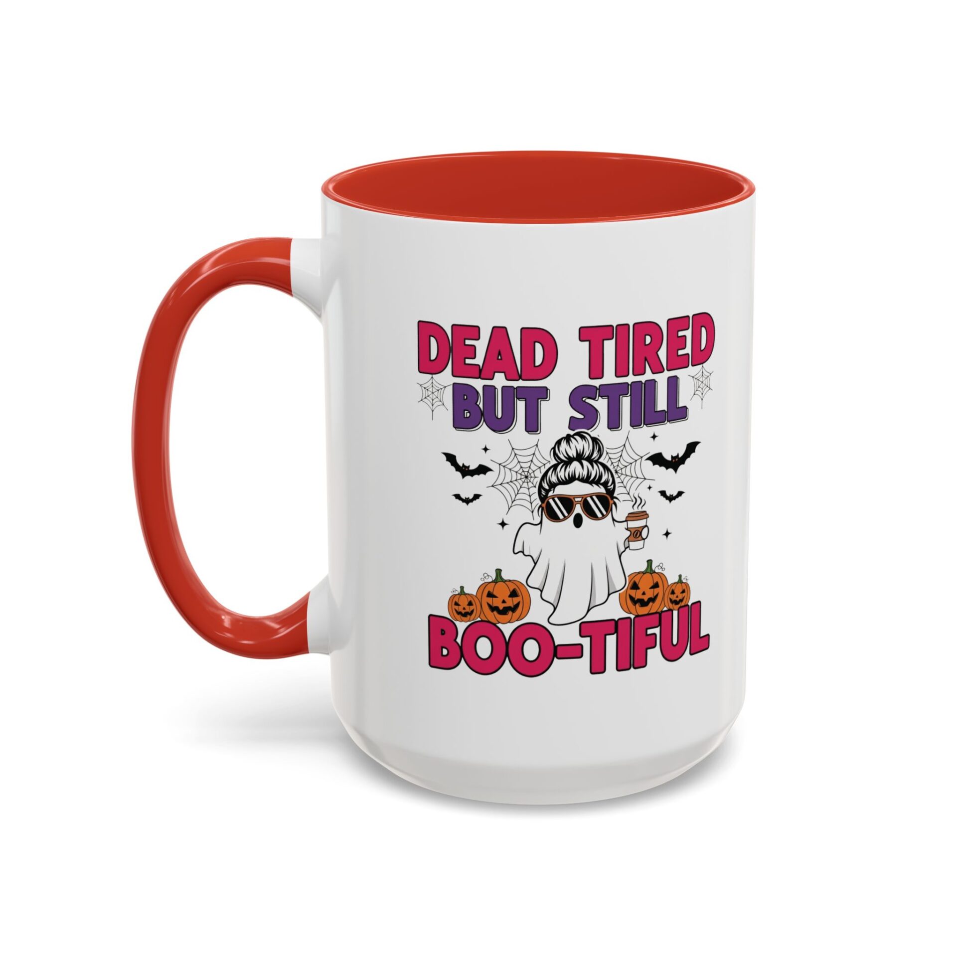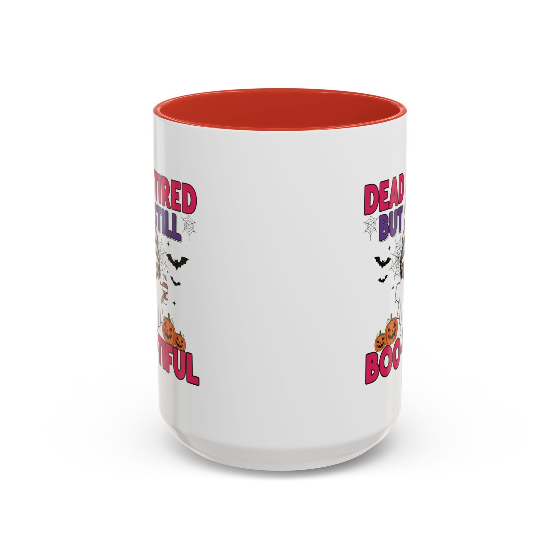Dead Tired But Still Boo-Tiful Halloween Coffee Mug – Funny Spooky Gift, Halloween Kitchenware, Ceramic Mug for Coffee Lovers