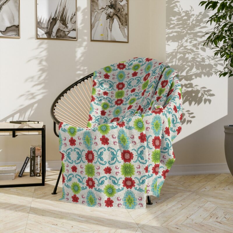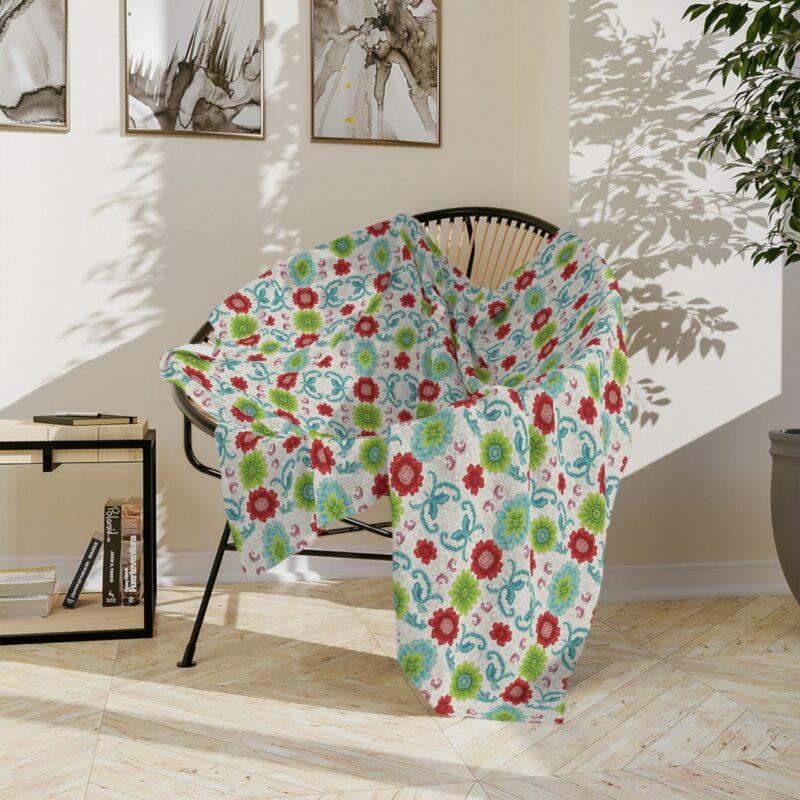microfiber blanket, floral throw blanket, cozy home décor, soft plush blanket, red, blue, and green blanket, exotic floral blanket, living room throw, bed blanket