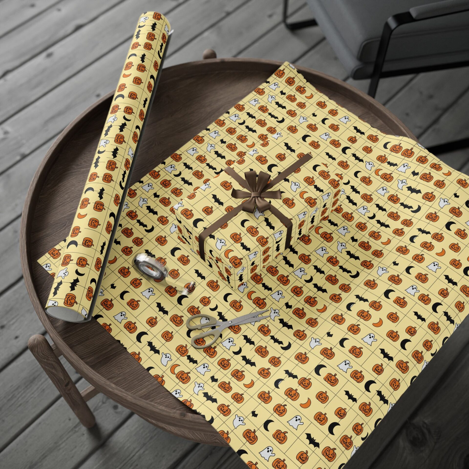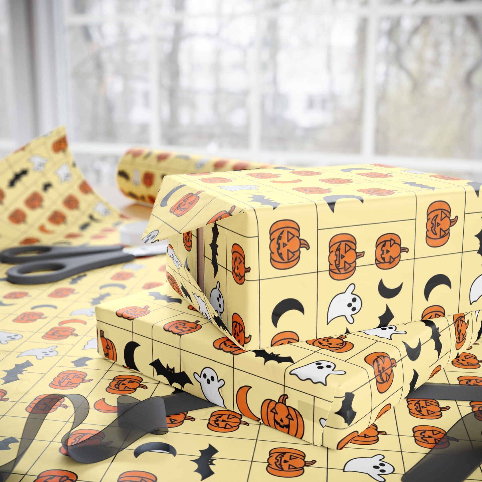 Gift Wrapping Paper Roll – Cute Halloween Pumpkins & Boo Ghost, Festive Matte or Glossy Paper for Seasonal Gift Wrapping
