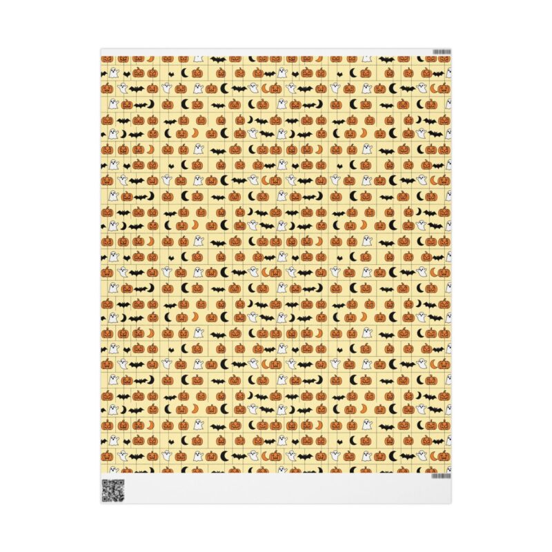 Ideal for Halloween celebrations, birthday gifts, or seasonal surprises, this wrapping paper is perfect for friends, family, or anyone who loves to give gifts with personality and flair. A white space with a bar code and QR code allows for easy customization, making your gifts not only beautiful but also personal and thoughtful.