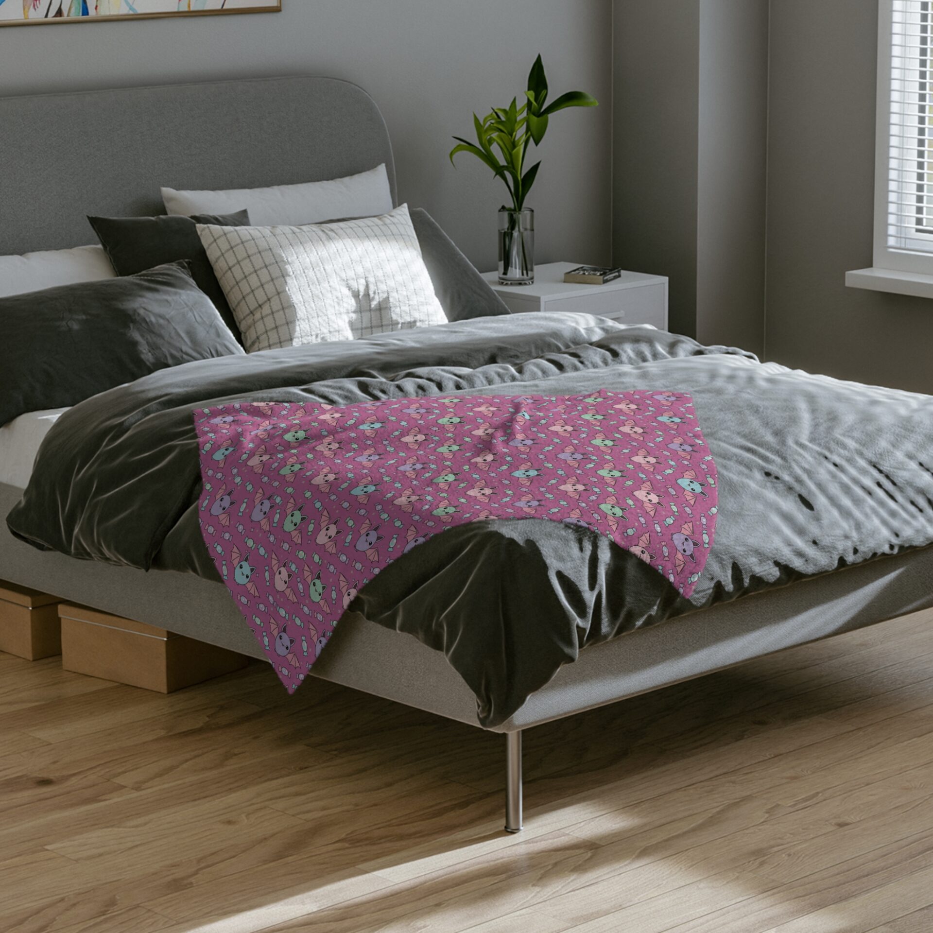 Add a whimsical touch to your Halloween decor with this Halloween Microfiber Blanket—Pink and Blue Bats Pattern. Designed for those who want festive vibes without bold colors, this plush throw features a delightful arrangement of pink and blue bats that create a playful yet elegant Halloween look.