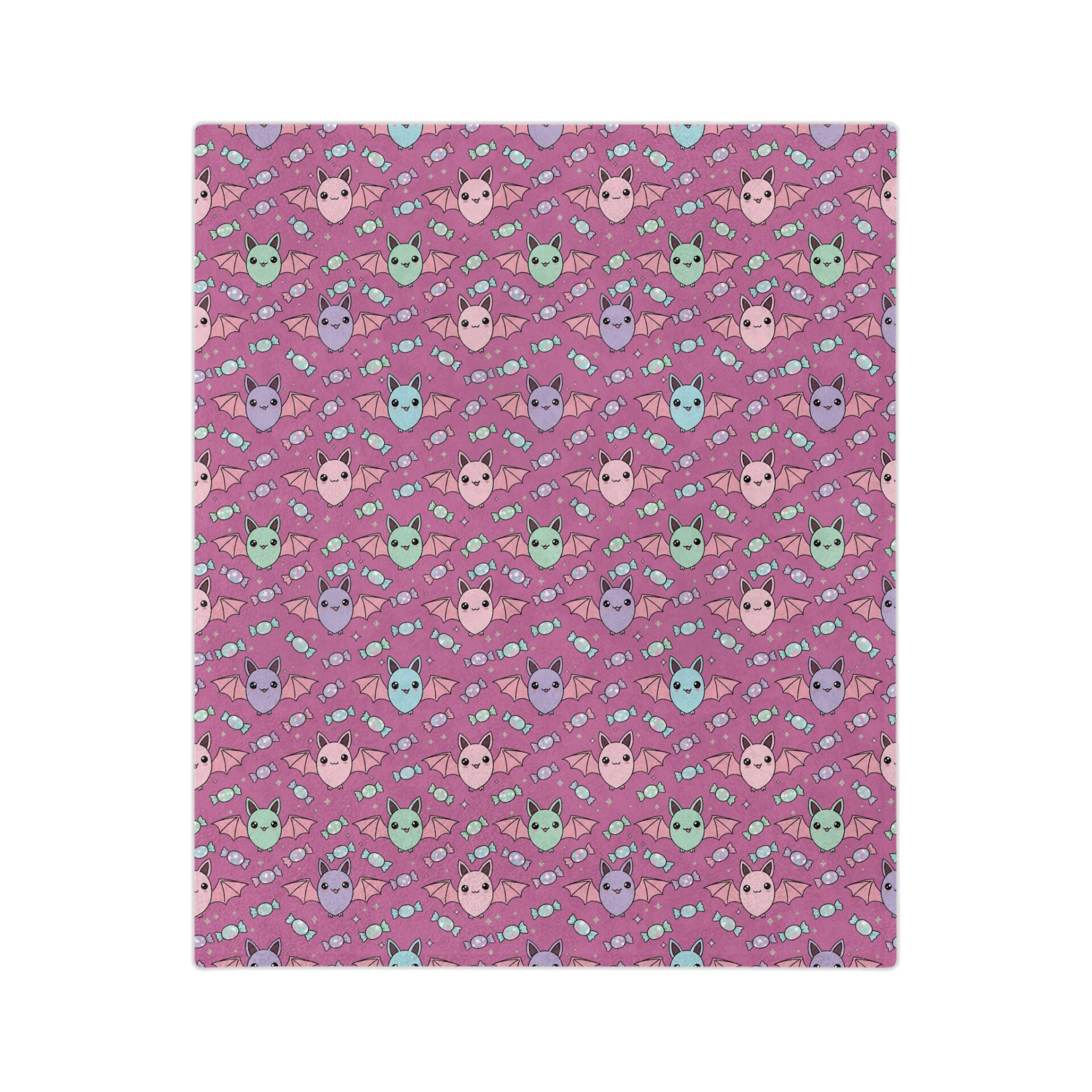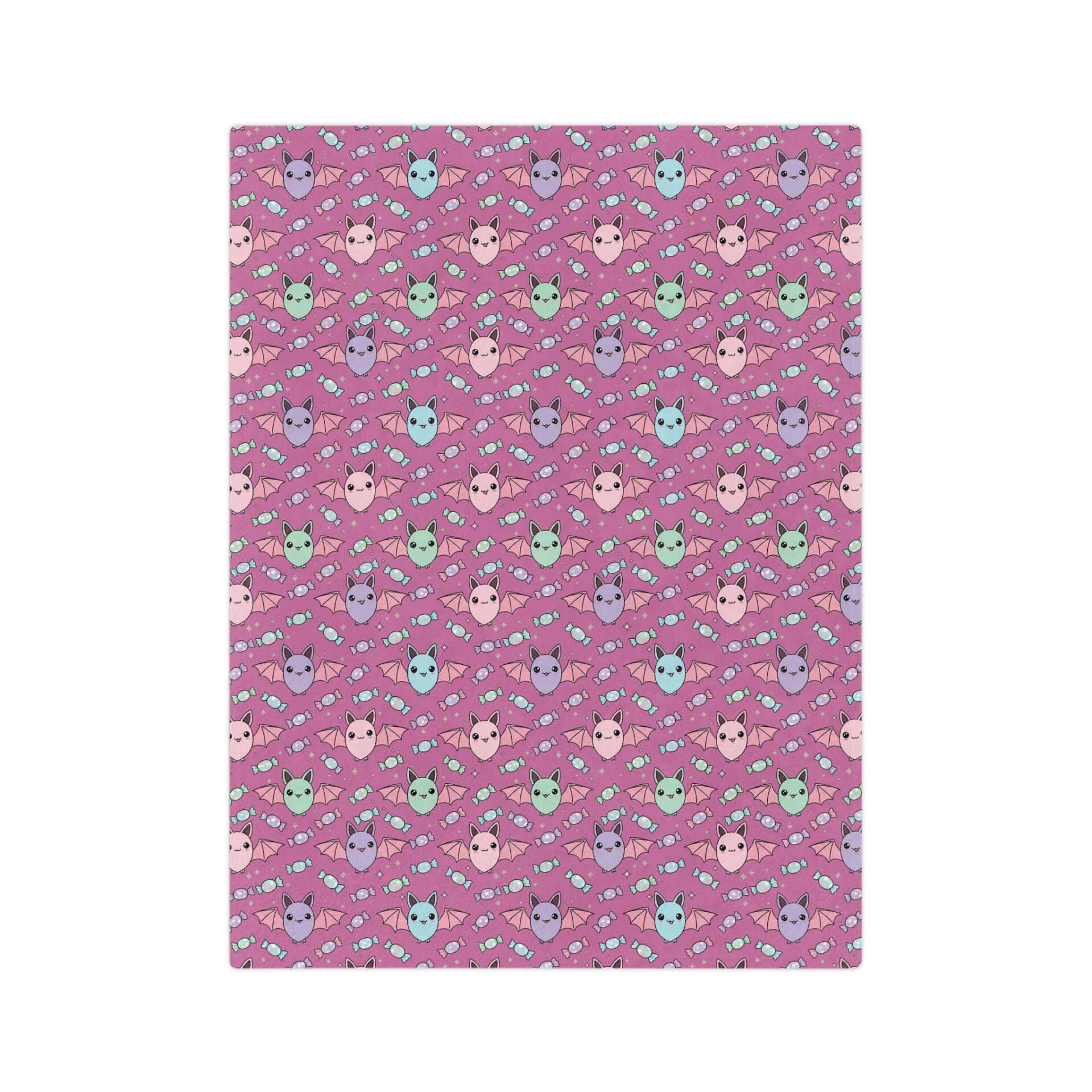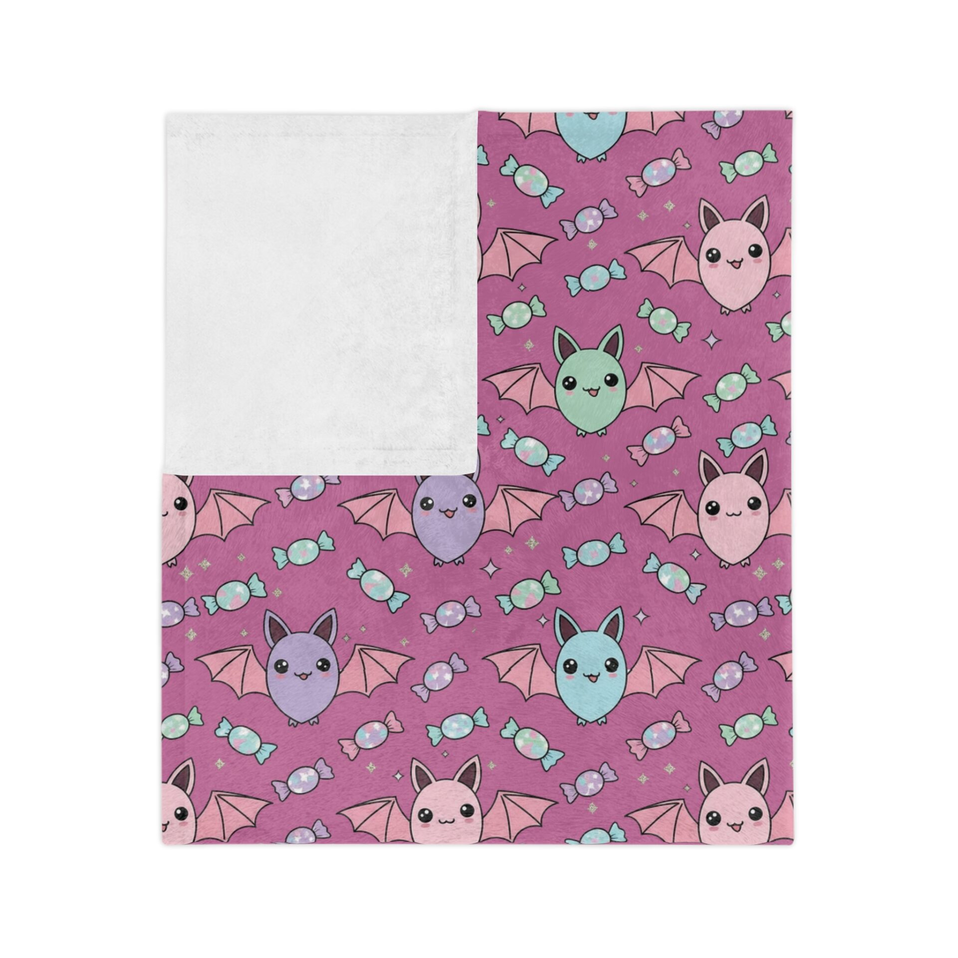 Halloween Microfiber Blanket – Plush Throw with Pink and Blue Bats Pattern, Soft Cozy Decor for Spooky Nights