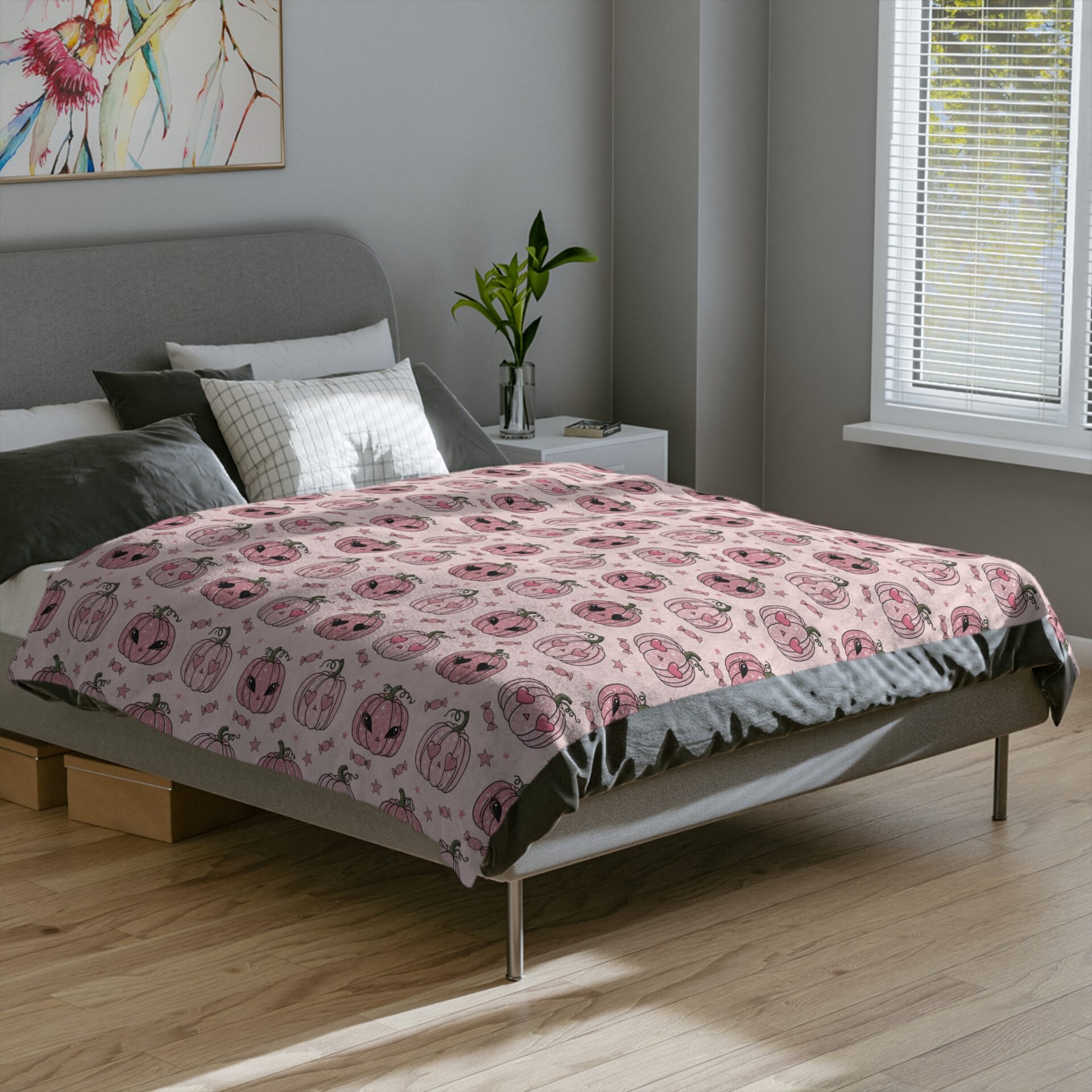 Bring warmth, comfort, and a subtle Halloween vibe to your home with this Halloween Microfiber Blanket adorned with a stylish pattern of light and dark pink pumpkins. The evenly spaced pumpkins create a modern and playful look that’s perfect for anyone who wants festive decor without the bold orange tones.