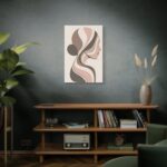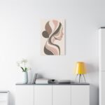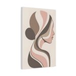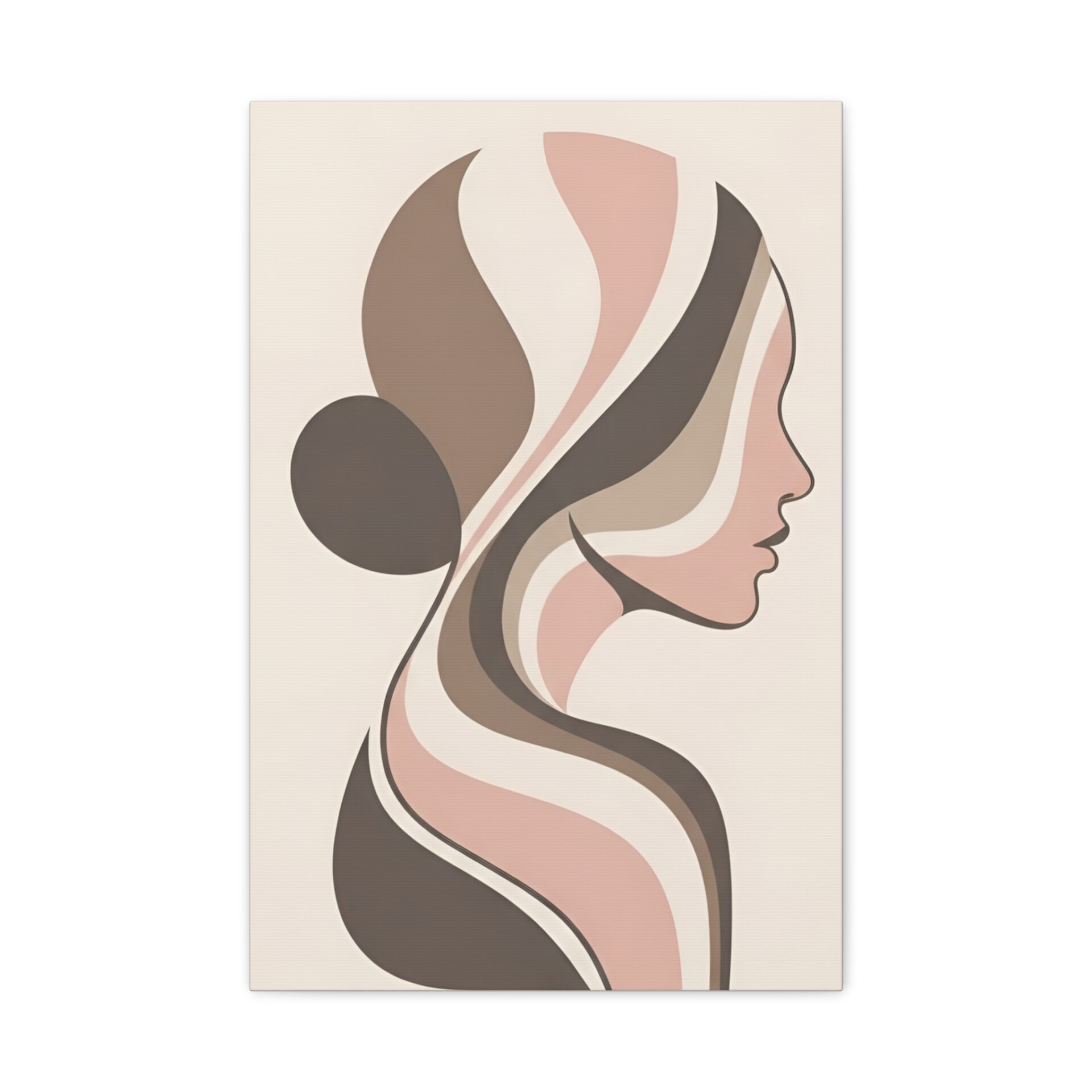 An abstract side profile of a woman, expressed through flowing organic shapes in earthy taupe, ivory, and soft blush. The neutral palette and modern matte finish make it a timeless choice that complements both contemporary and classic interiors. Shop is Unique Digital Canvas Art Now.
