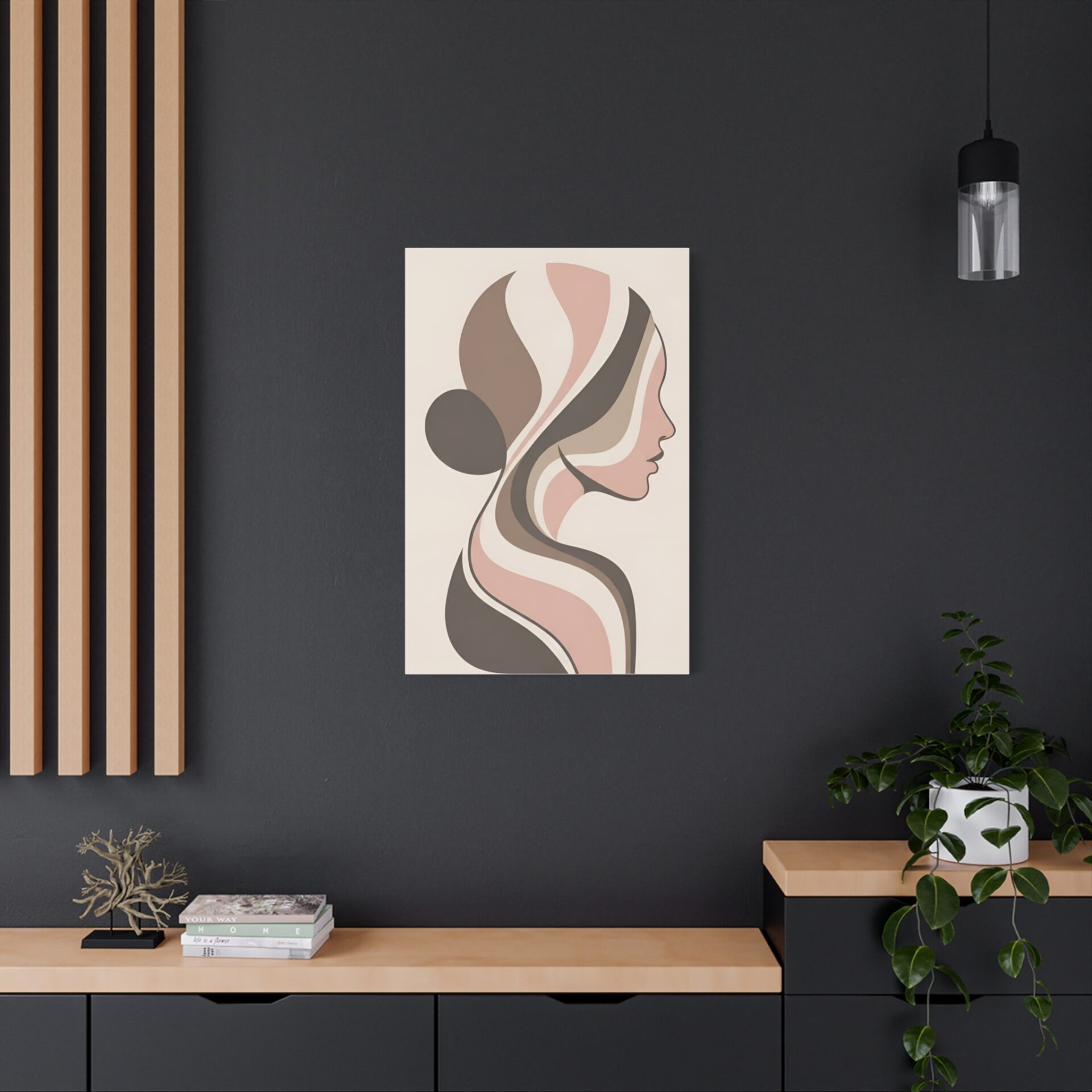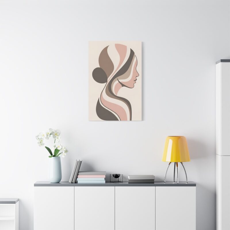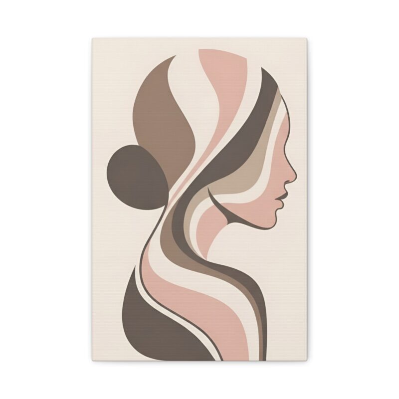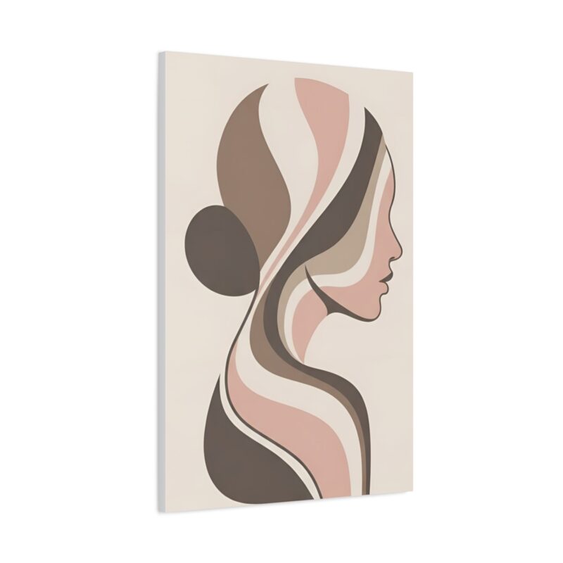 An abstract side profile of a woman, expressed through flowing organic shapes in earthy taupe, ivory, and soft blush. The neutral palette and modern matte finish make it a timeless choice that complements both contemporary and classic interiors.